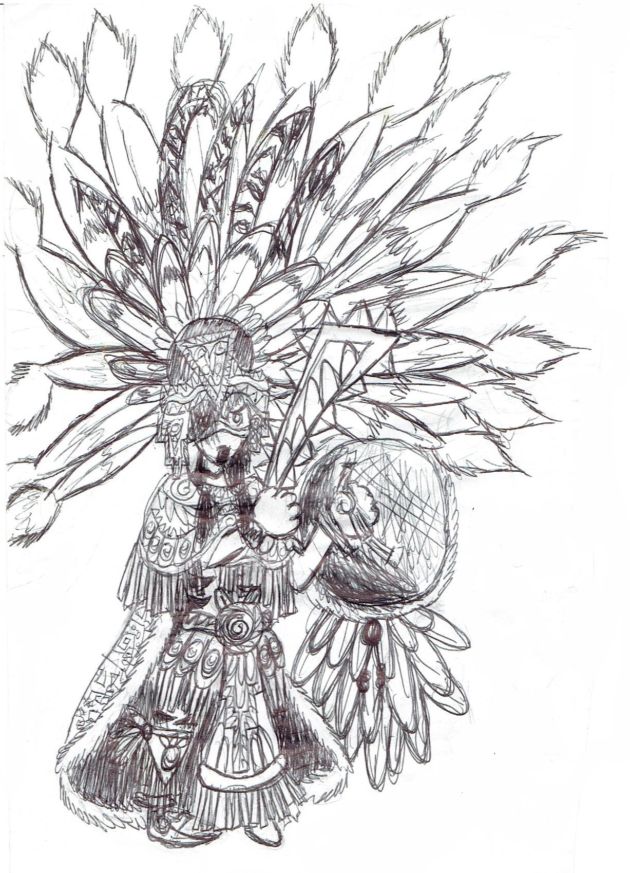 ...Anyway this started out as originally a small doddle of an ancient Aztec warrior the doddle turned out to be a full blown artwork. As grand and as majestic as this warrior may look it seems this Aztec warrior is about to lead a sacrifice or kill and enemy of the empire...