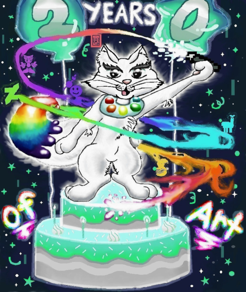 Artis Gives DeviantArt a warm 20th to all the years of wonderful amazing art. As she holds the symbolic pen of DeviantArt and the years of amazing artwork shoot out of the pen. All these years come together to celebrate 20 years of art and inspiration. In fact, Artis here happens to love DeviantArt and is even in awe about all the amazing creative colorful art that Devinatart has inspired, made, and shaped the artistic world. Artis is impressed (and she does not impress easily!) So Artis wishes a happy 20th birthday to DeviantArt and is amazed at all the wonderful art here and hopes to have another 20 more.