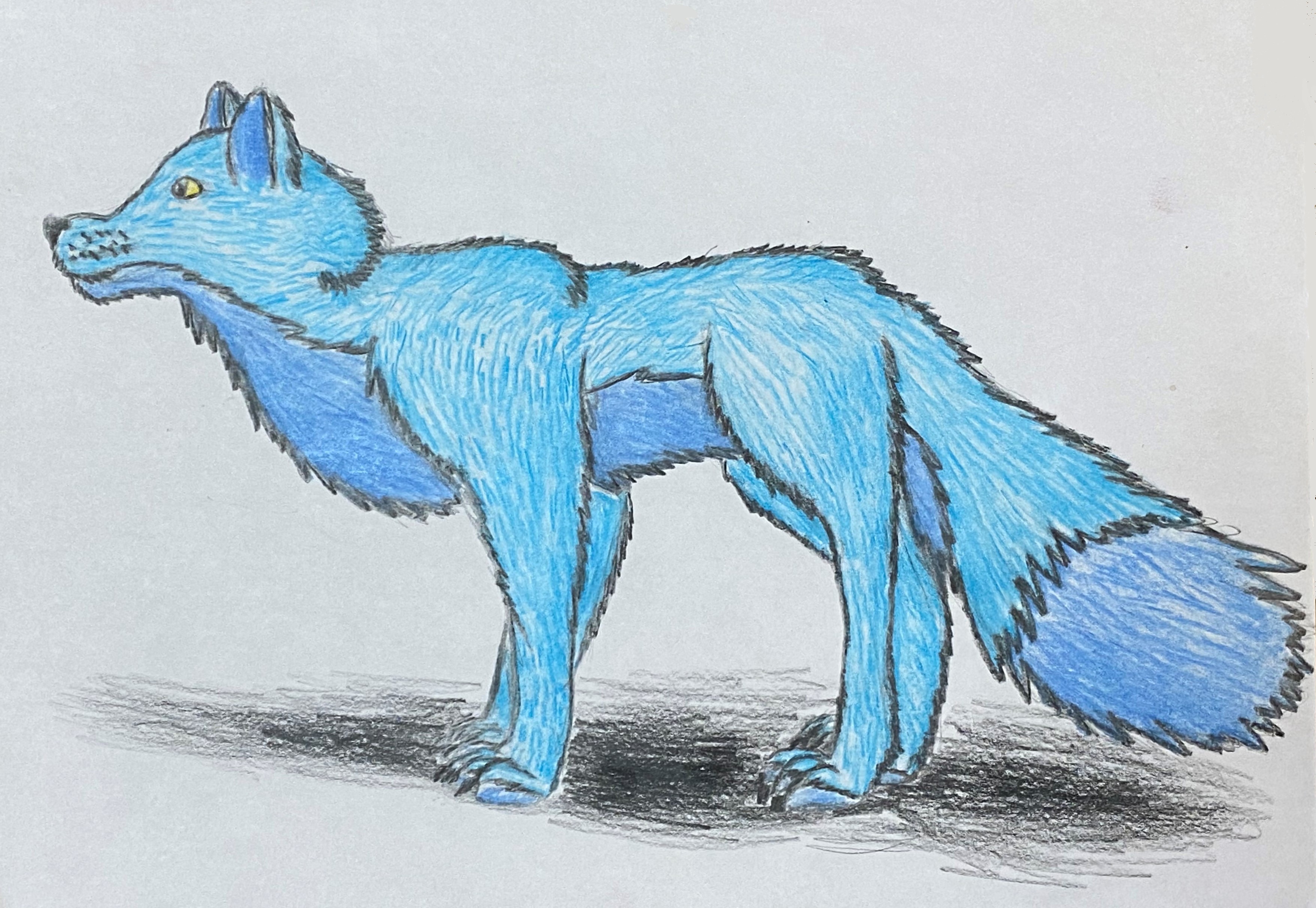 An early drawing of mine of a personalized O.C. wolf in my style. Awhile back I was obsessed with wolves and especially wolf O.C.s. So, I tried to eventually draw my own wolf O.C.s and did some that looked okay, but this one was my best yet: a wolf with ice cold colors really turned out to be my first unique wolf O.C. that I'm still proud of today.