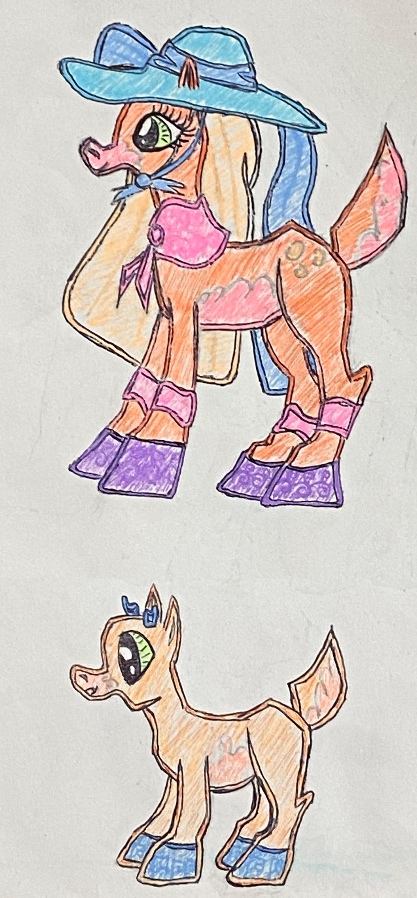 These neon deer were inspired by My little pony: friendship is magic style. After watching the show, I feel in love with the beautiful yet charming cartoon style so much, so I wanted to make my own cute cartoon style: I started with an animal I love close to horses/ponies that I love: deer. And the finished style and deers (along with the bright neon colors) looks so wonderful and turned out awesome I might use this style in the future.