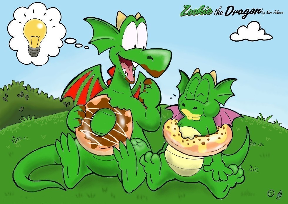 Well I have to say, I’m really really happy how this turned out If you are wondering who these two odd dragons are Let me introduce you to Zookie and Sparky : young Drakes (specifically refering to here as a very small breed of dragon) living in the English countryside. And it seems Zookie has and idea seeing Sparky in that Doughnut ring one sunny day while eating some nice doughnuts.....I know this won't end well....can you say doughnut pool ring in a gallon tub of coffee or something like that?